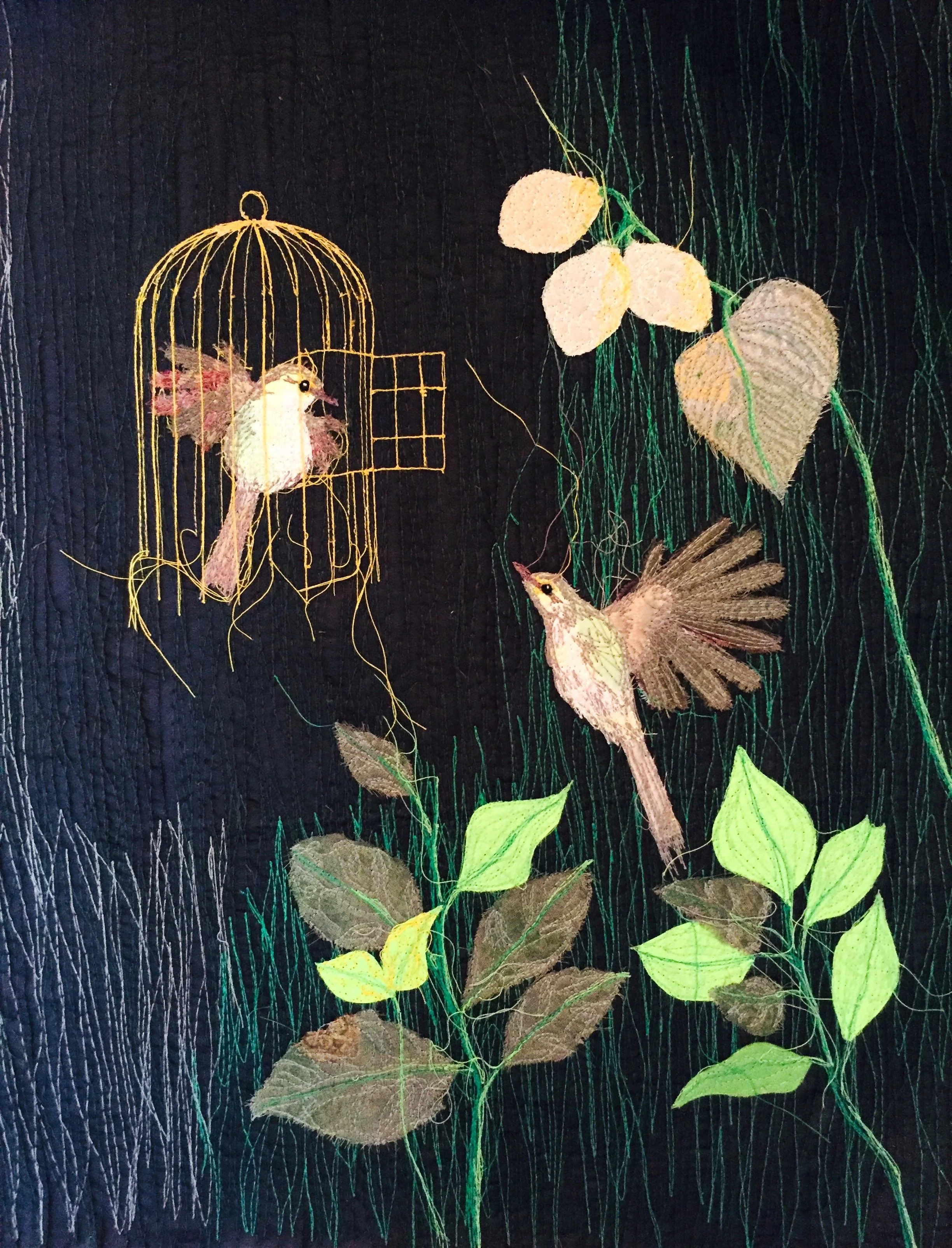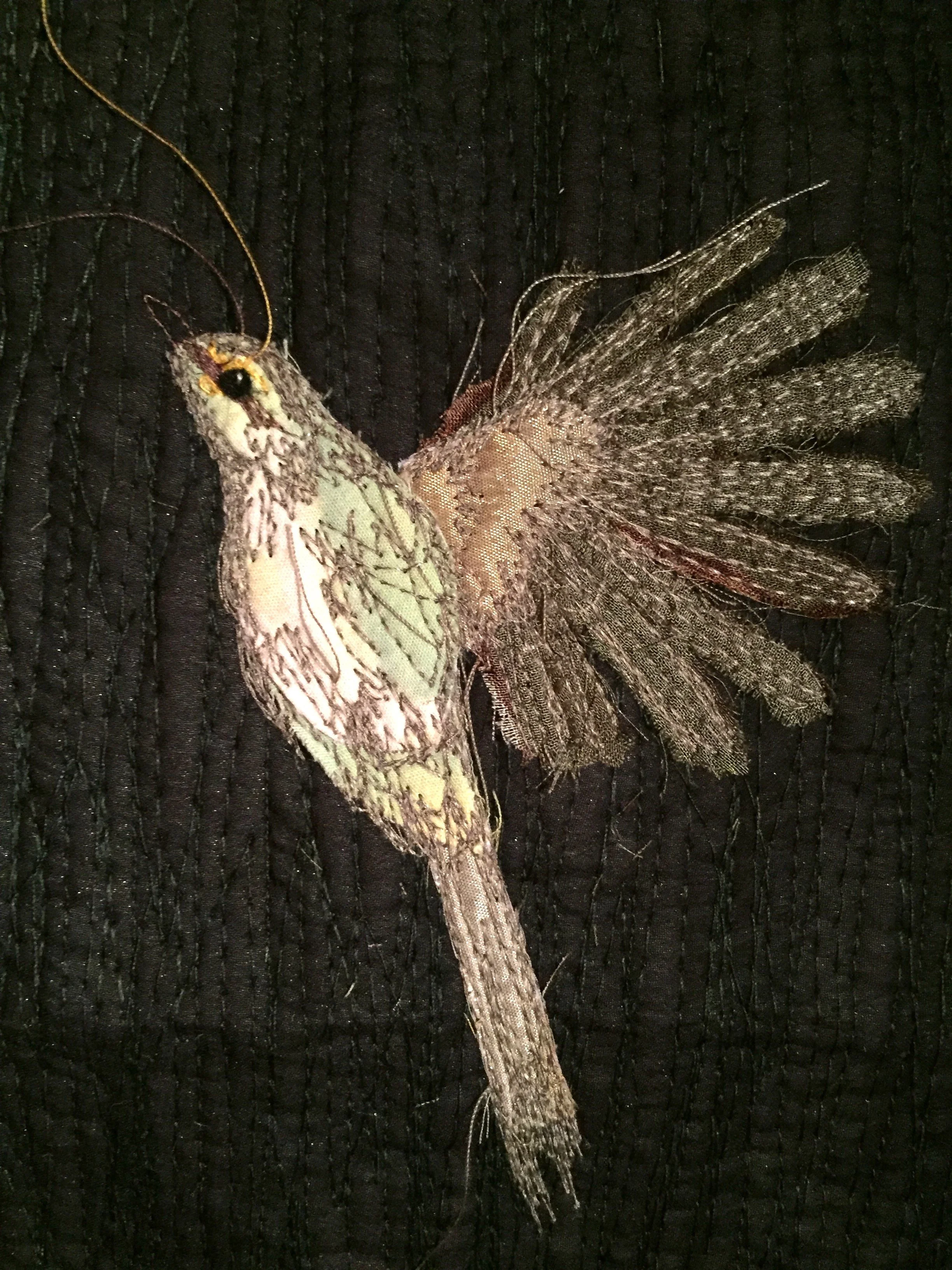 Made with recycled fabrics and embellished with free machine embroidery.