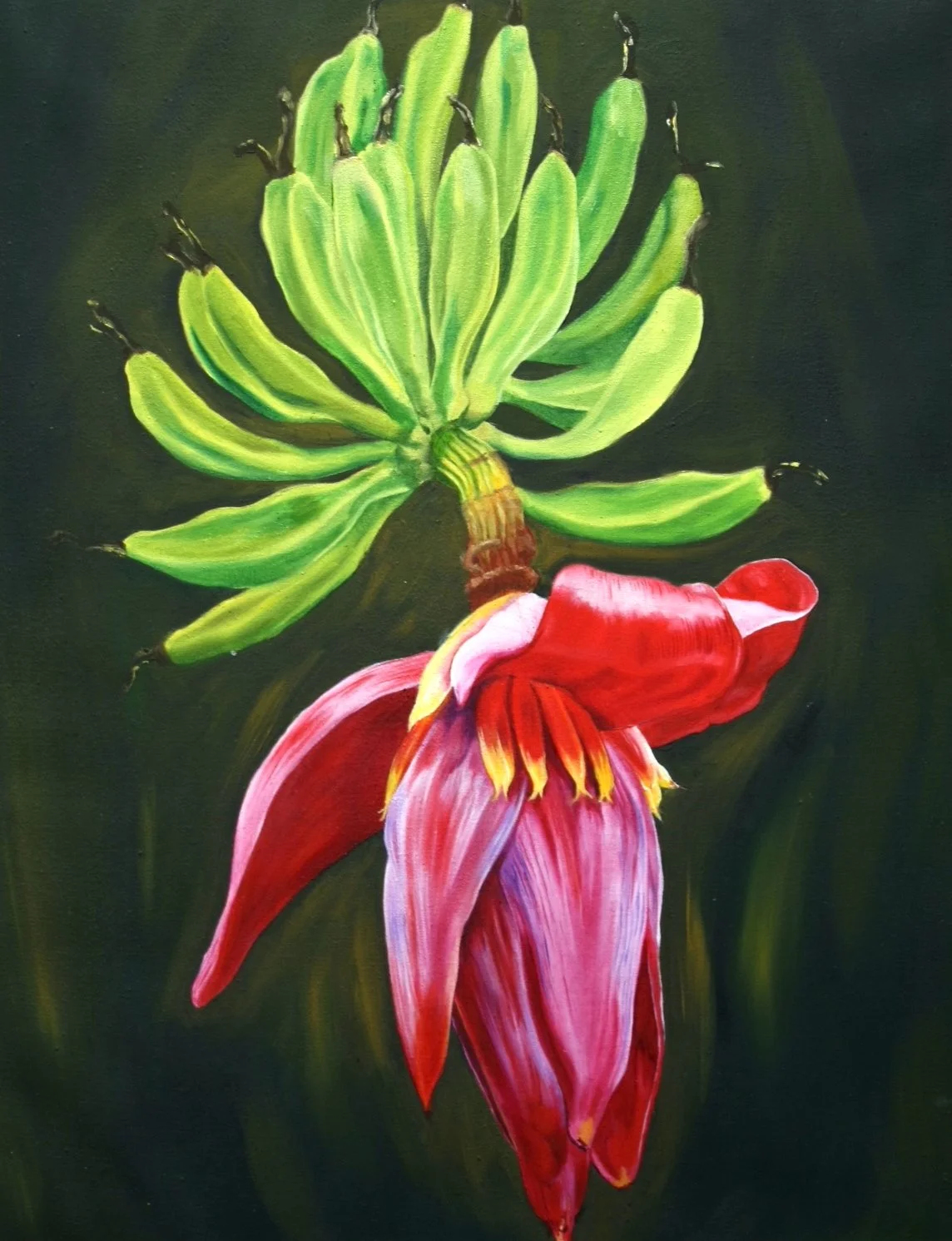 Paintings are original designs based on my photography. I work in oils and acrylics, predominantly on hand stretched canvas. BIRD OF PARADISE BANANA FLOWER ROSA BAHIA FELIZ